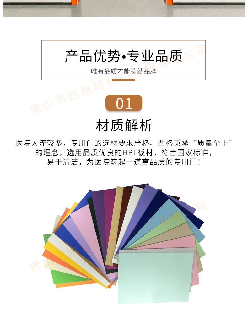 產品簡介:chnsige西格特種門,專業生產醫院門,醫院診室門,醫院辦公室門,醫院衛生間門,木質醫院門,鋼質醫院門,多鐘款式、顏色,尺寸可定制。
